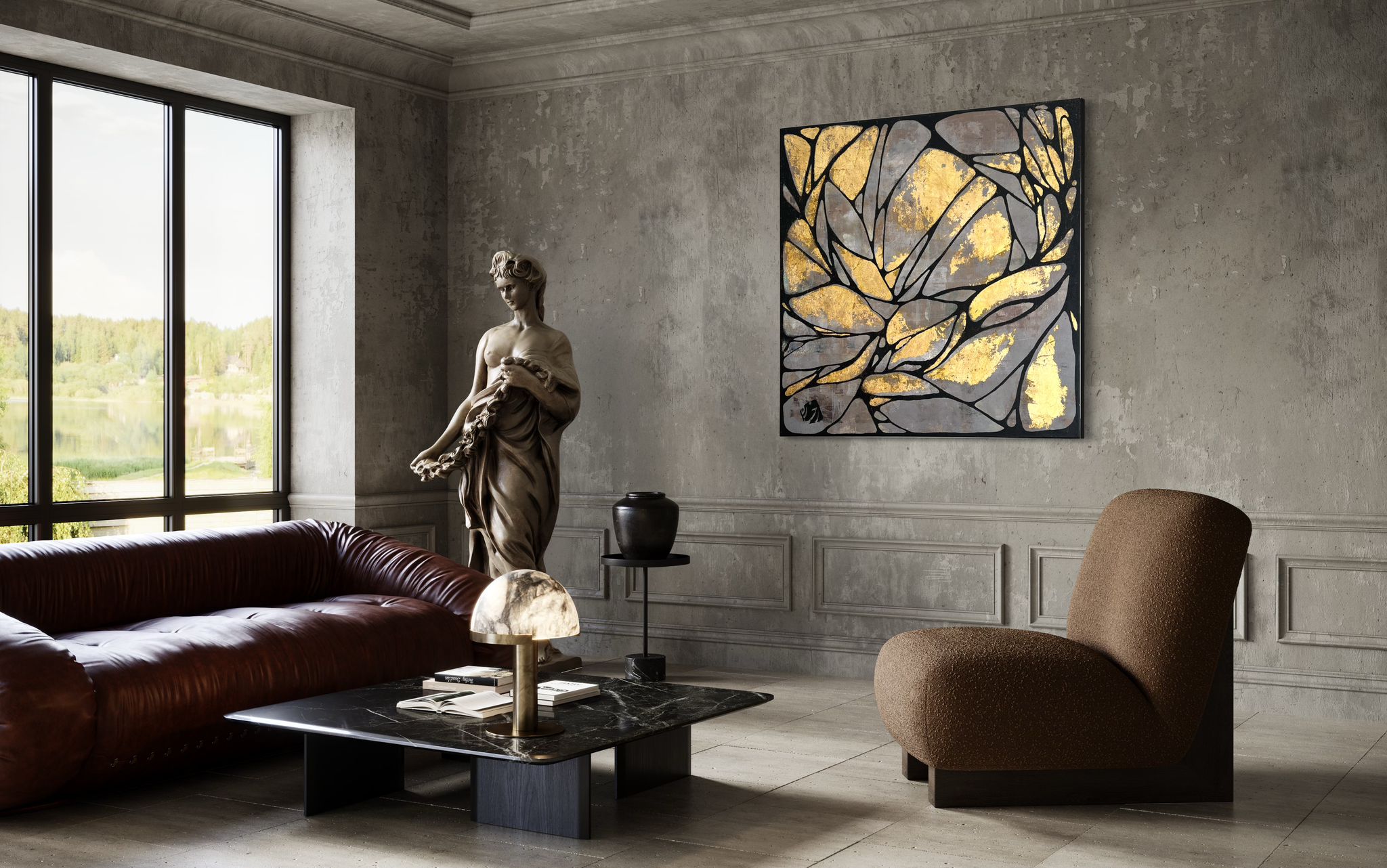 Abstract Gold Leaf Painting on Canvas – Modern Textured Art (36x36 in)